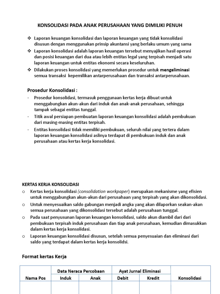 Mengenal Peran Jurnal Eliminasi Konsolidasi from www.harmony.co.id Worksheet neraca konsolidasi pc & sc setelah pembelian, diasumsikan account lain milik kedua perusahaan tsb diabaikan : ( dalam ribuan rupiah ). Sinar membeli 85% saham pt. Pt guntur mengakuisisi 80% saham pt heri pada tanggal 1 januari 2008 pada harga 80.000.000. Laporan laba/rugi dan laporan konsolidasi anak lainnya dikonsolidasi dengan induk satu periode setelah akuisisi. Konsolidasi atas akuisisi saham | consolidating stock acquisition. Untuk mengunduh file gunakan tombol download yang tersedia kemudian buka link download yang muncul. Berikut adalah sebagian dari neraca perusahaan zarira :